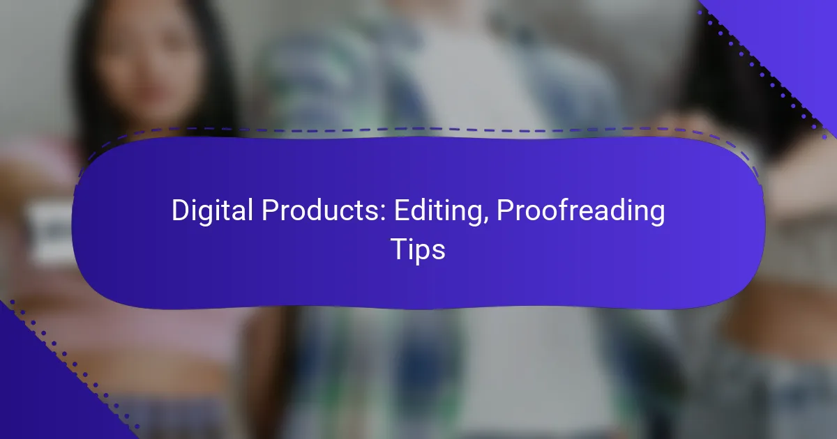 Effective editing tips for digital products focus on enhancing clarity, coherence, and overall quality. Utilizing tools and structured methods can significantly improve the editing process, ensuring your content resonates with the target audience.